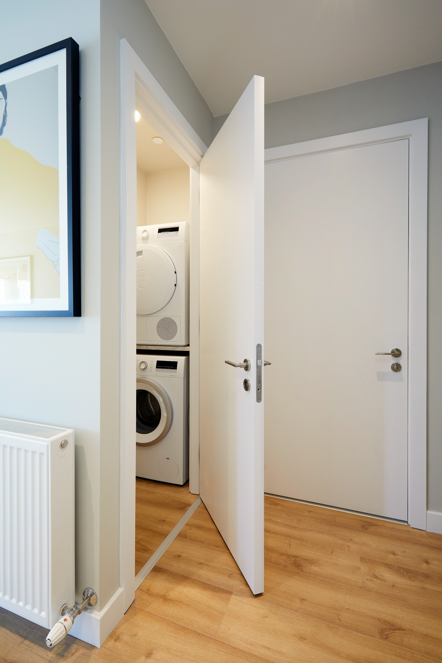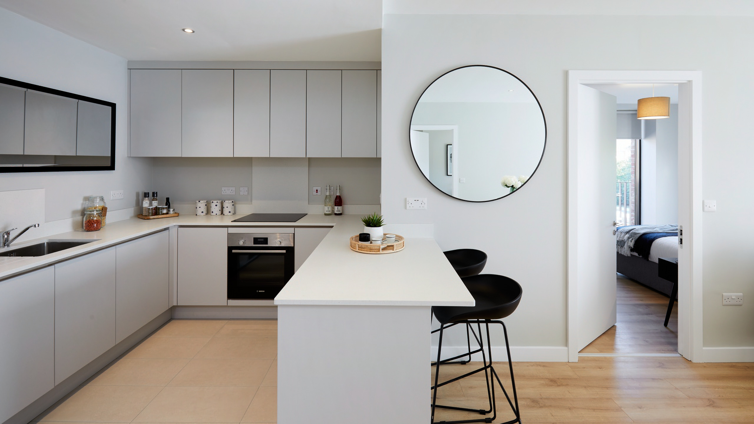 Each apartment features a contemporary bespoke kitchen with stone-effect worktops, along with a generous Bosch appliance package including integrated fridge-freezer, dishwasher, oven, electric hob and extractor. Utility rooms are featured in all apartments.
