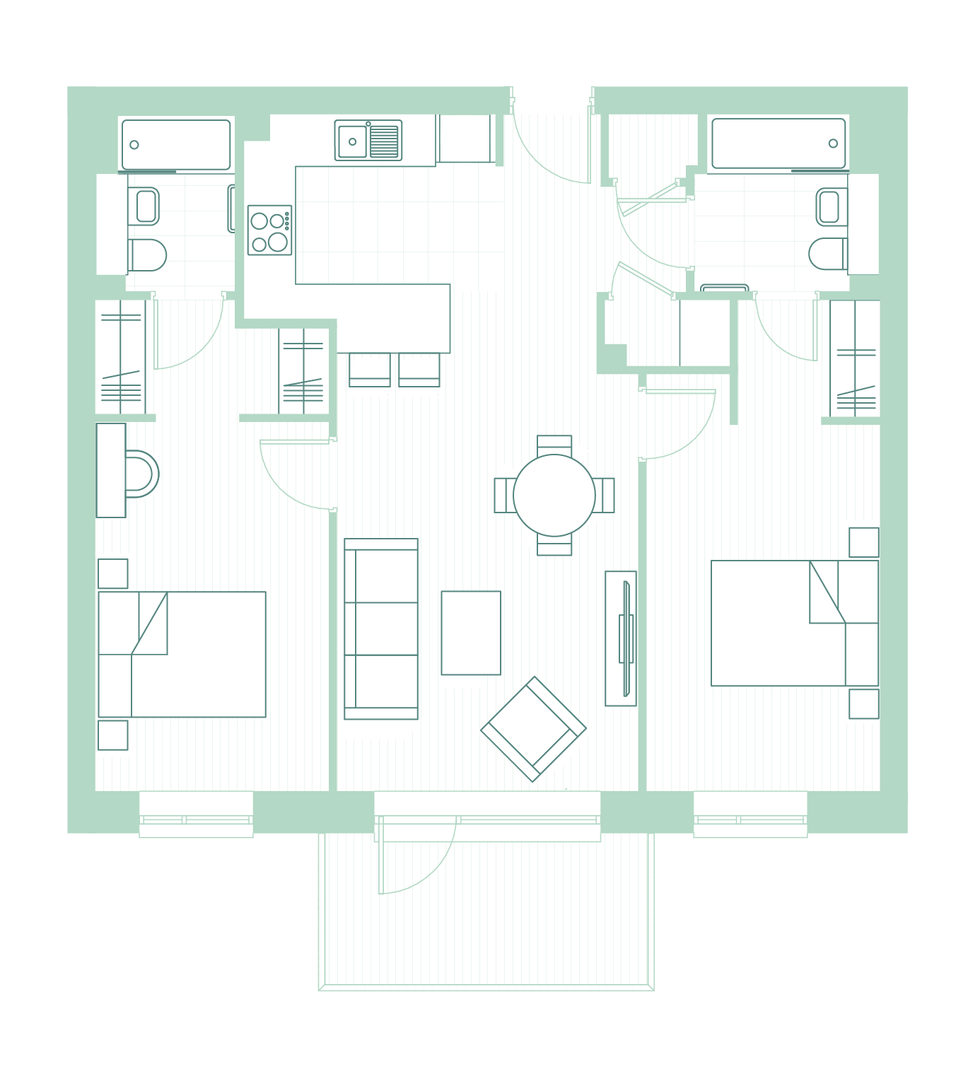 For growing families or friends who want a little more space, our two-bedroom apartments are an excellent option. Large living areas are bright and inviting, while fully fitted kitchens are quite simply a dream for budding chefs. Everything is there for you – simply move in!